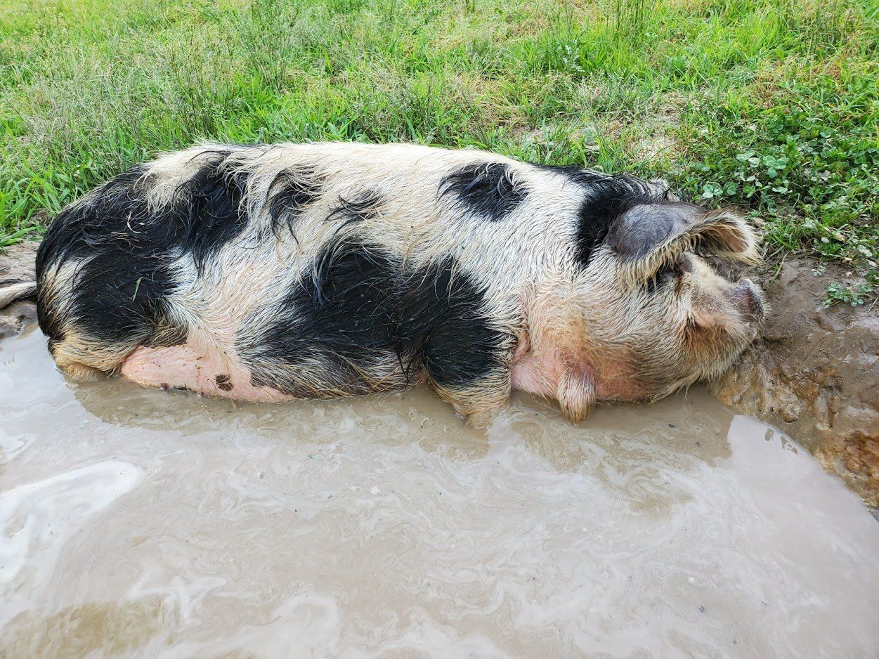 Evan is deaf and has a tendency to wander off on his own away from his herd because of it. While it gives him the impression of being a loner, this could not be further from the truth. He has been picked on by the bigger ones and instead prefers to be a nanny to the younger pigs. He has helped raise all the newly weaned boars adjust to moving to a new pasture with the others.