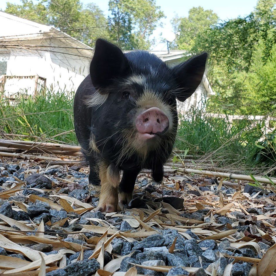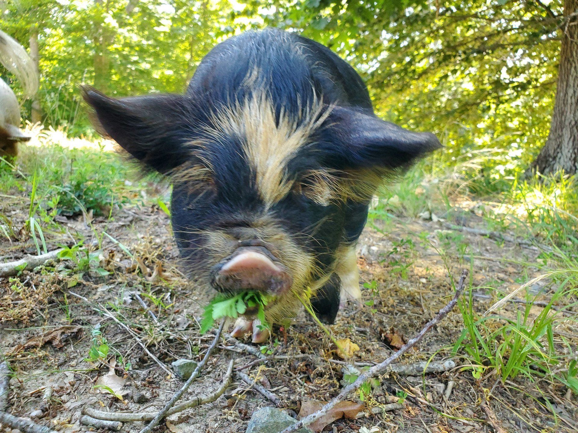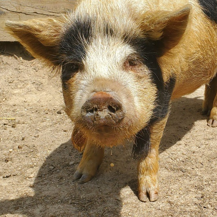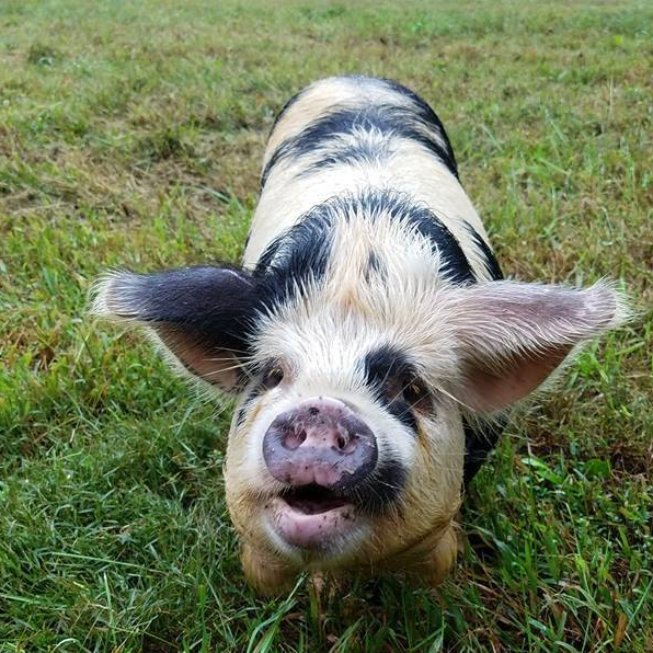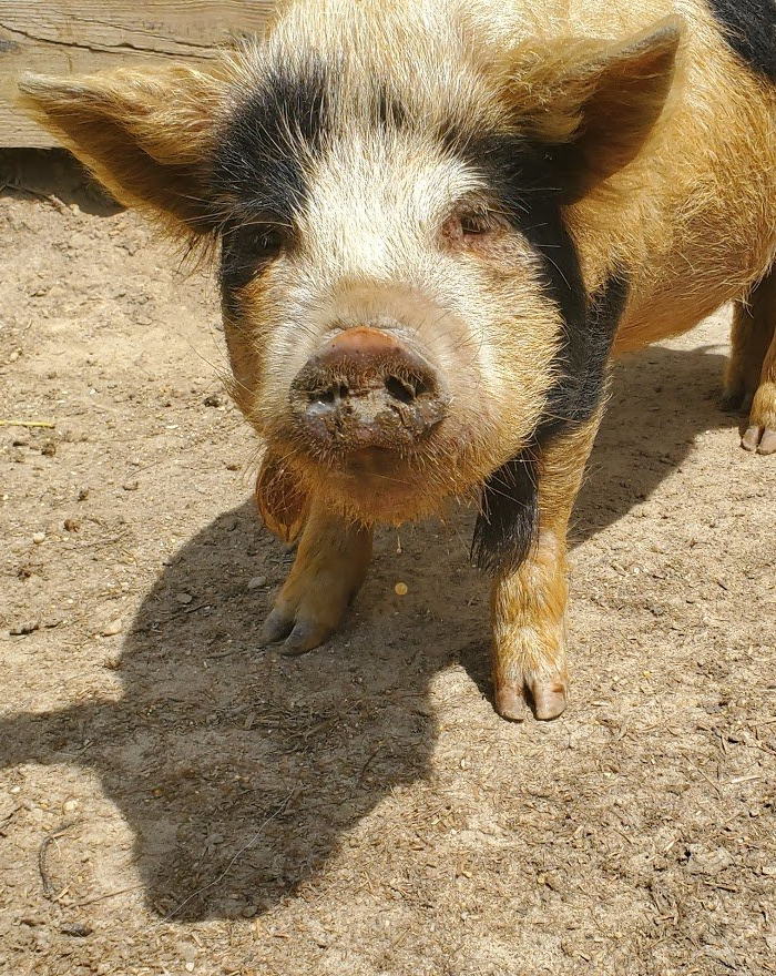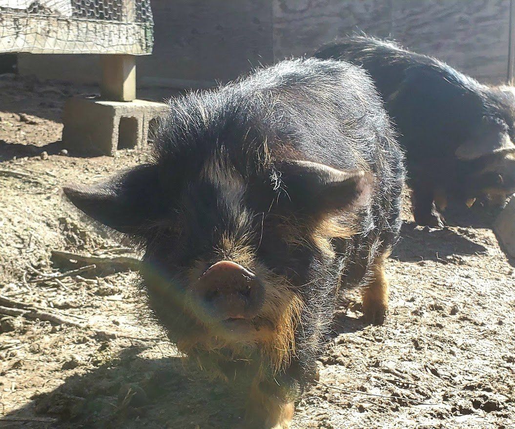 Paisano is a character. Always the first to alert us to dinner time he is the most vocal of our herd and quite the chatterbox. He is a very playful pig with the personality of a cat.