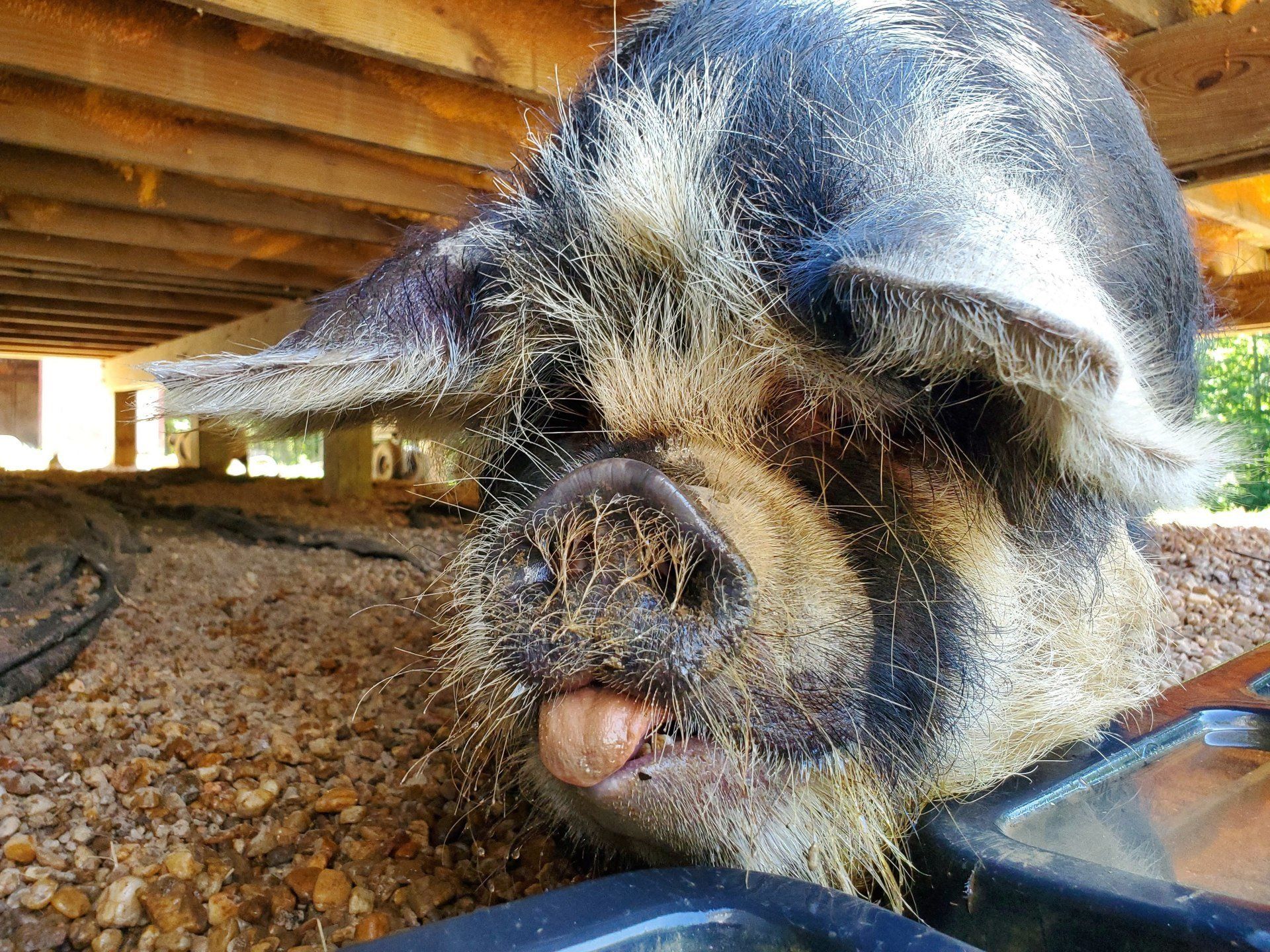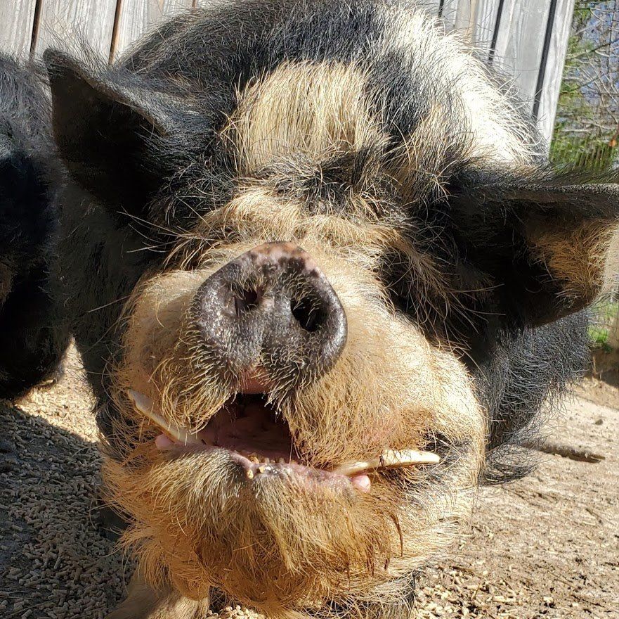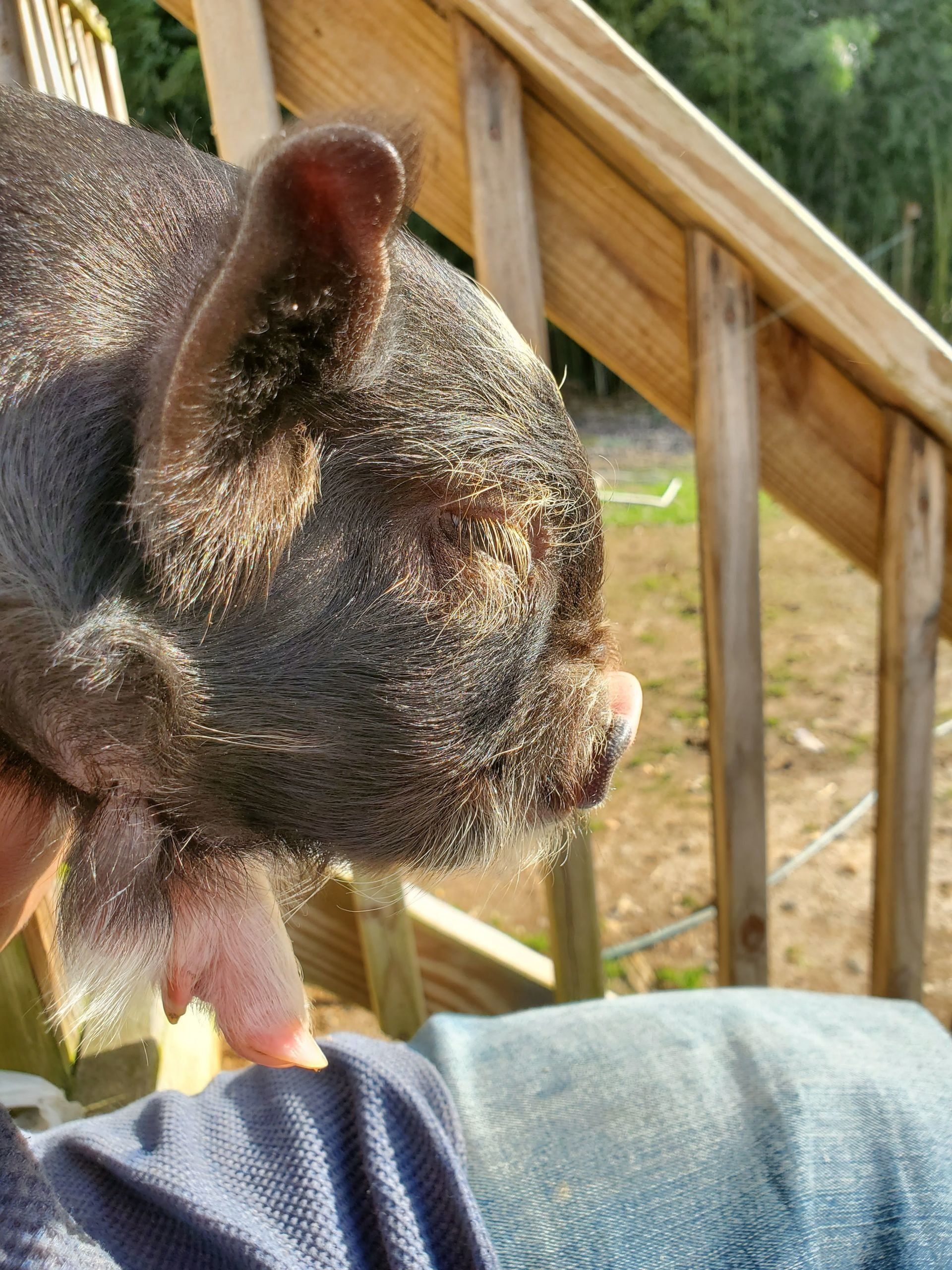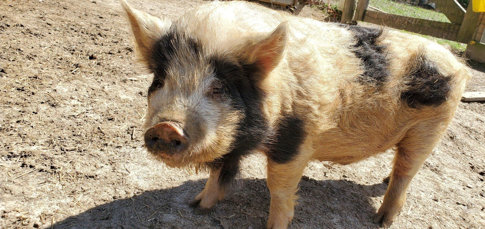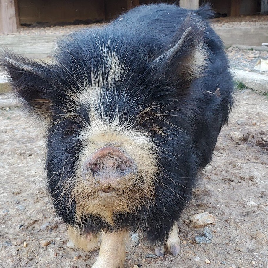 Paisano is a character. Always the first to alert us to dinner time he is the most vocal of our herd and quite the chatterbox. He is a very playful pig with the personality of a cat.